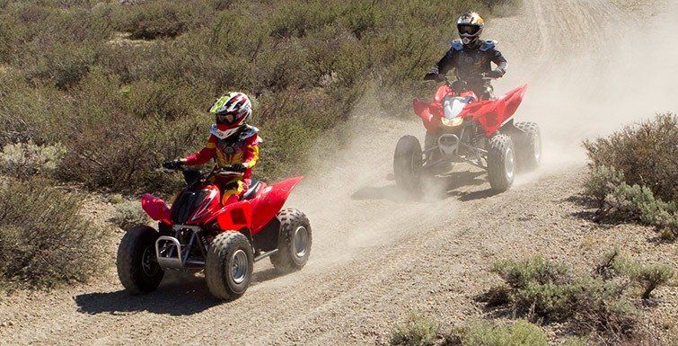 Attention thrill seekers, it’s time to ride! The possibilities are endless with access to exceptional vehicles like the Honda TRX250 EX. This world-class ATV was introduced in 2006 with some attractive features, including the Honda SportClutch and its direct rear driveshaft. With the capability to produce 17 horsepower, its 229cc engine, and lightweight aluminum wheels, this ATV is suitable for aggressive riding and long distances. We also have options for our young riders looking to embark on their off-road adventure, so get ready to bring out the entire family!